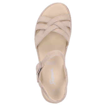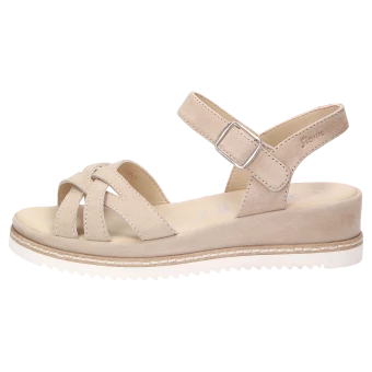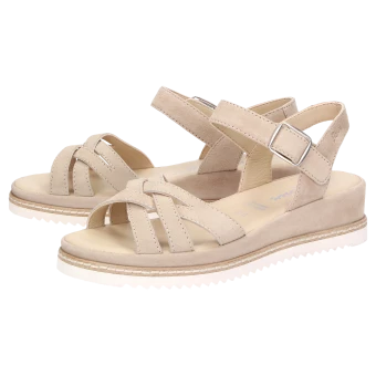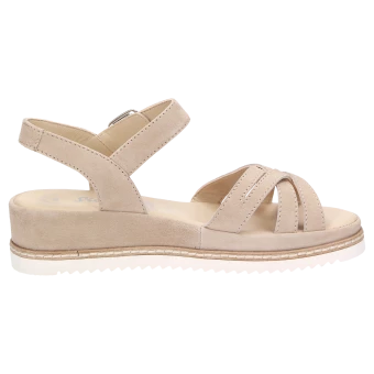 Agréable sandale en cuir velours de chèvre fin avec bride de fermeture en forme de T et première de propreté en cuir bien rembourrée. Le chaussant de largeur G, la coupe parfaite et la semelle au profil dentelé marquant assurent un bon amorti et un grand confort en marchant.