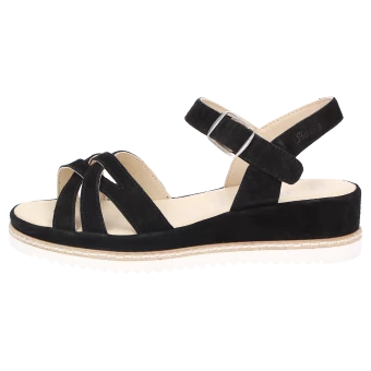 Agréable sandale en cuir velours de chèvre fin avec bride de fermeture en forme de T et première de propreté en cuir bien rembourrée. Le chaussant de largeur G, la coupe parfaite et la semelle au profil dentelé marquant assurent un bon amorti et un grand confort en marchant.