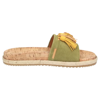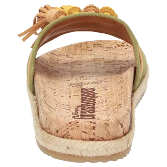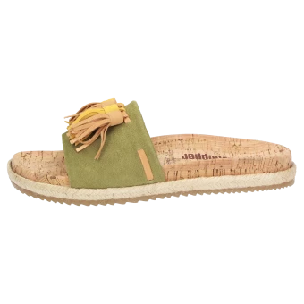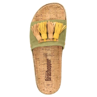 Confortable mule pour femme de notre série Grashopper en cuir velours de chèvre fin avec ornement à glands fantaisie, première de propreté en liège au rembourrage extra-souple et chaussant G bien large. La coupe parfaite et la semelle en caoutchouc, au profil dentelé marquant, assurent un bon amorti et un grand confort en marchant.