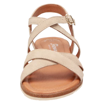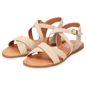 Sandales pour femme à la ligne plate confortable, lointainement inspirée des spartiates. Fabrication artisanale en cuir velours de chèvre fin, avec une semelle de propreté rembourrée pour un grand confort et des bandes croisées sur l’avant-pied. Ces nu-pieds s’enfilent aisément grâce aux deux élastiques au niveau de la boucle et sur le cou-de-pied. La semelle extérieure en caoutchouc, fine et légèrement dentelée, apporte la touche finale à cette sandale parfaite pour l’été.