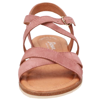 Sandales pour femme à la ligne plate confortable, lointainement inspirée des spartiates. Fabrication artisanale en cuir velours de chèvre fin, avec une semelle de propreté rembourrée pour un grand confort et des bandes croisées sur l’avant-pied. Ces nu-pieds s’enfilent aisément grâce aux deux élastiques au niveau de la boucle et sur le cou-de-pied. La semelle extérieure en caoutchouc, fine et légèrement dentelée, apporte la touche finale à cette sandale parfaite pour l’été.