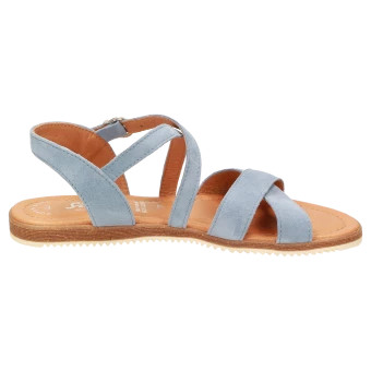 Sandales pour femme à la ligne plate confortable, lointainement inspirée des spartiates. Fabrication artisanale en cuir velours de chèvre fin, avec une semelle de propreté rembourrée pour un grand confort et des bandes croisées sur l’avant-pied. Ces nu-pieds s’enfilent aisément grâce aux deux élastiques au niveau de la boucle et sur le cou-de-pied. La semelle extérieure en caoutchouc, fine et légèrement dentelée, apporte la touche finale à cette sandale parfaite pour l’été.