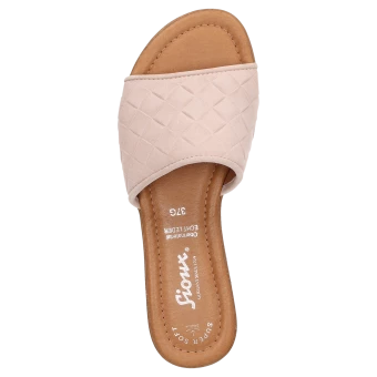 Confortable mule en cuir velours de chèvre fin avec semelle de propreté rembourrée, chaussant G bien large. La coupe parfaite et la semelle en caoutchouc, au profil dentelé marquant, assurent un bon amorti et un grand confort en marchant. Le motif à carreaux piqué sur l’empeigne apporte une touche fantaisie. La chaussure parfaite pour l’été, en vente exclusivement dans notre boutique en ligne.