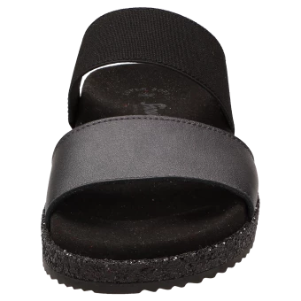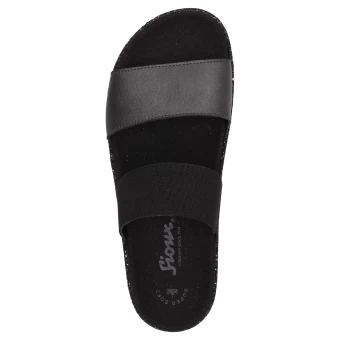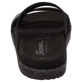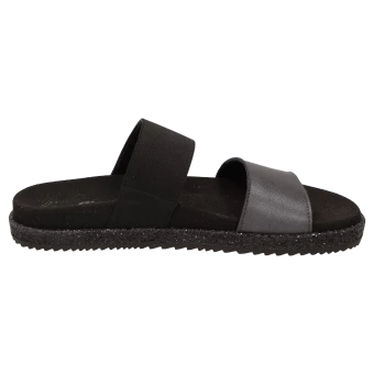 Nouveauté dans l’assortiment d’été et montée immédiate dans les best-sellers. Notre sandale d’été comme mule à la mode est le compagnon idéal et aéré des journées chaudes et ensoleillées, mais aussi un parfait chausson pour femme à utiliser comme pantoufle à la maison. Mule à la mode en cuir de chèvre avec finition métallique. Sandales confortables pour femmes avec semelle souple et anatomique pour un confort accru. La semelle extérieure en caoutchouc légèrement nervurée avec un bord pailleté très tendance complète parfaitement cette sandale d’été.
