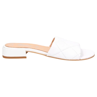 Mule légère pour l’été en cuir nappa d’agneau d’une très grande souplesse, motif à carreaux piqué tendance. Le chaussant G large et la semelle en microlite léger assurent un confort optimal.