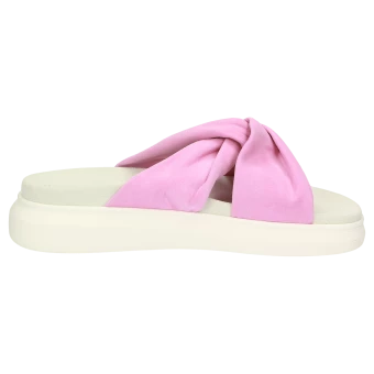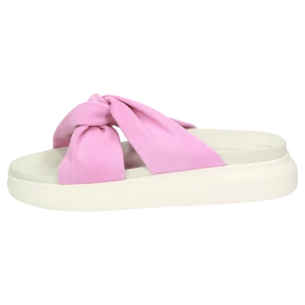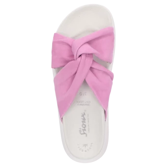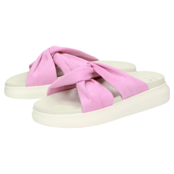 Confortable mule en cuir velours de chèvre fin avec une première de propretĂ© rembourrĂ©e, chaussant G bien large. La forme originale nouĂ©e sur le dessus et la solide semelle en caoutchouc lui donnent une allure tendance. La chaussure parfaite pour l’Ă©tĂ©, en vente exclusivement dans notre boutique en ligne.