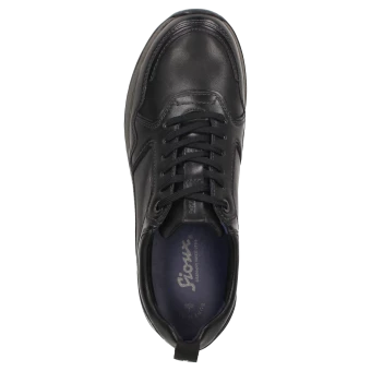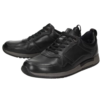 Confortable sneaker pour homme à l’allure marquante, en cuir de veau brillant. Doublure en tissu fin, chaussant optimal grâce au contour de tige matelassé et à la forme remontant au niveau du talon. La semelle intérieure tendue de cuir est amovible et peut être remplacée par une semelle sur mesure. Cette chaussure, qui fait partie de nos meilleures ventes, se distingue par sa semelle extérieure légère surmoulée en caoutchouc qui amortit parfaitement les chocs et assure un confort remarquable.