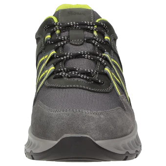 Chaussure outdoor basse à lacets pour homme, allure tendance avec son mélange de cuir velours de veau, de nylon et de cuir nubuck de vachette huilé. La membrane Tex empêche l’eau de pénétrer dans la chaussure. Intérieur entièrement doublé en mesh fin et première de propreté en cuir matelassée. La semelle intérieure ultra-souple est amovible de manière à pouvoir la remplacer par une semelle sur mesure. La semelle extérieure légère est fabriquée dans un mélange polyuréthane et assure d’excellentes sensations en marchant grâce à son profil marqué.