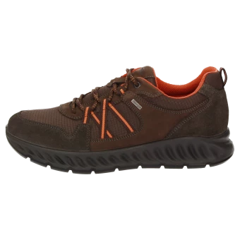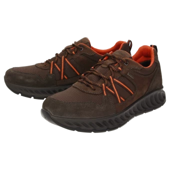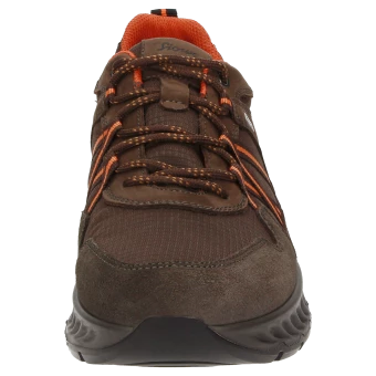 Chaussure outdoor basse à lacets pour homme, allure tendance avec son mélange de cuir velours de veau, de nylon et de cuir nubuck de vachette huilé. La membrane Tex empêche l’eau de pénétrer dans la chaussure. Intérieur entièrement doublé en mesh fin et première de propreté en cuir matelassée. La semelle intérieure ultra-souple est amovible de manière à pouvoir la remplacer par une semelle sur mesure. La semelle extérieure légère est fabriquée dans un mélange polyuréthane et assure d’excellentes sensations en marchant grâce à son profil marqué.