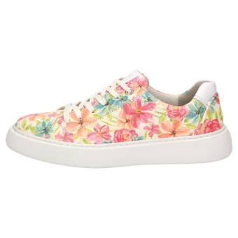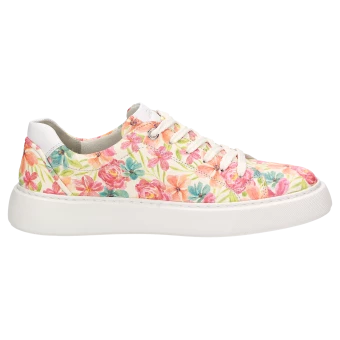 Édition limitée tirée de la collection Til Schweiger × Sioux pour femme ! Cette sneaker, dessinée par Til Schweiger en personne, séduit par son style destroy tout en décontraction qui se combinera à merveille avec vos tenues de tous les jours. Le cuir de chèvre souple à l’imprimé fleuri et la fabrication artisanale garantissent un confort maximal. Grâce à la confection particulière selon la méthode California et à la semelle intérieure amovible matelassée, la chaussure est à la fois ultra-flexible et très légère. Les finitions artisanales, telles que l’aspect usé de la semelle ou les petits détails dans la zone du talon, confèrent à ce modèle, proposé en édition strictement limitée, un caractère unique qui ne manquera pas d’attirer les regards.